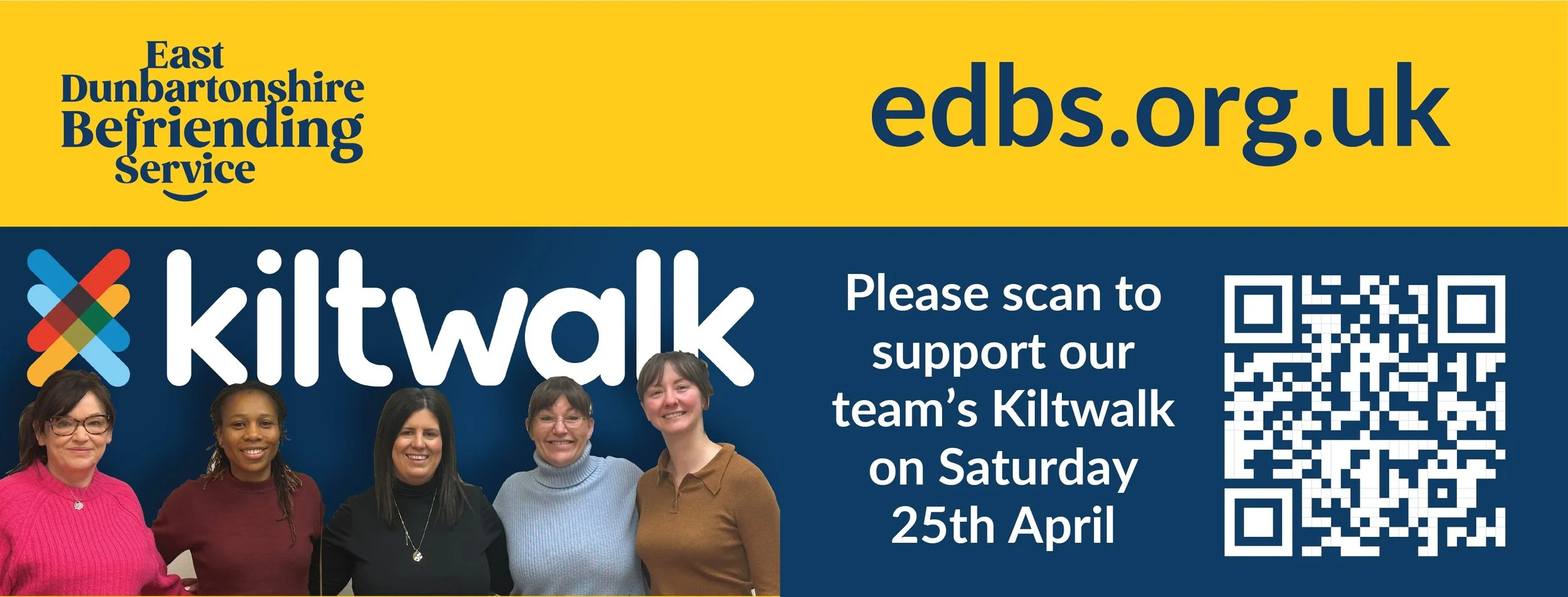 1. You can sign up to walk the Kiltwalk too and select East Dunbartonshire Befriending Service as your chosen charity. There are various dates/locations and times you can choose from: www.thekiltwalk.co.uk/events